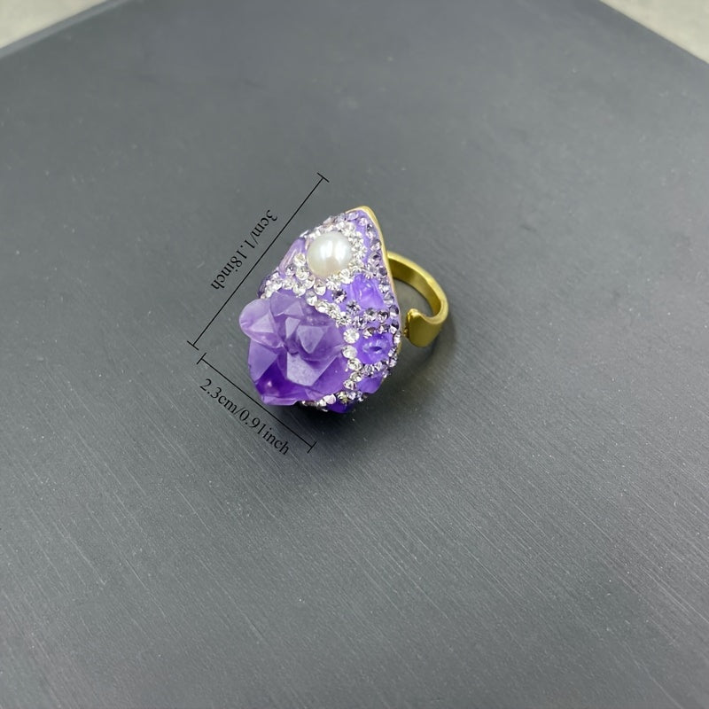 Conjunto de joyería de perla amatista con detalles de rhinestone, collar, pendientes y anillo, regalo