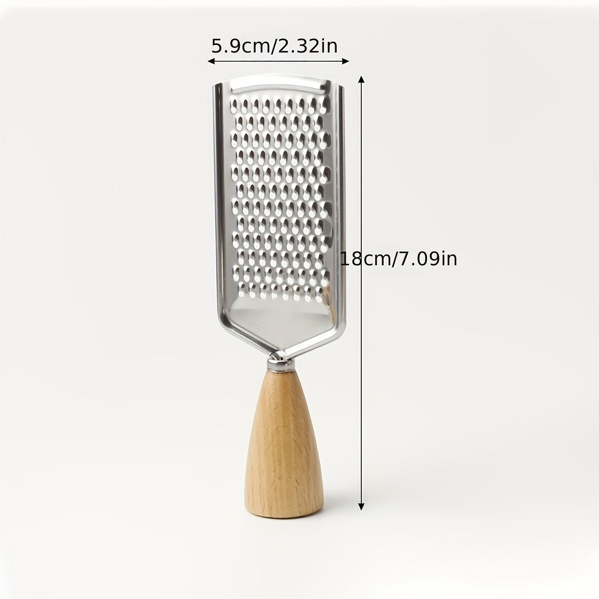 Rallador de alimentos de acero inoxidable con mango de madera de haya para queso y uso en la cocina