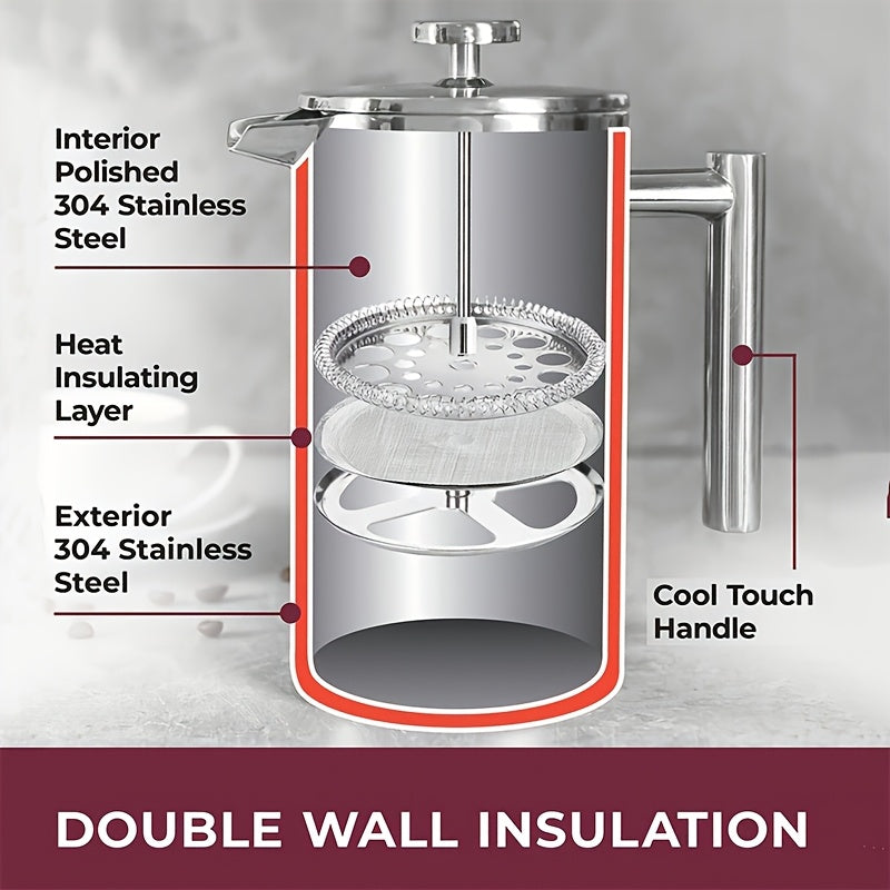 Cafetera de prensa francesa de acero inoxidable con doble pared y aislamiento de 33oz