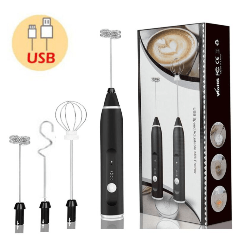 Batidor de leche eléctrico de mano y licuadora de acero inoxidable para café