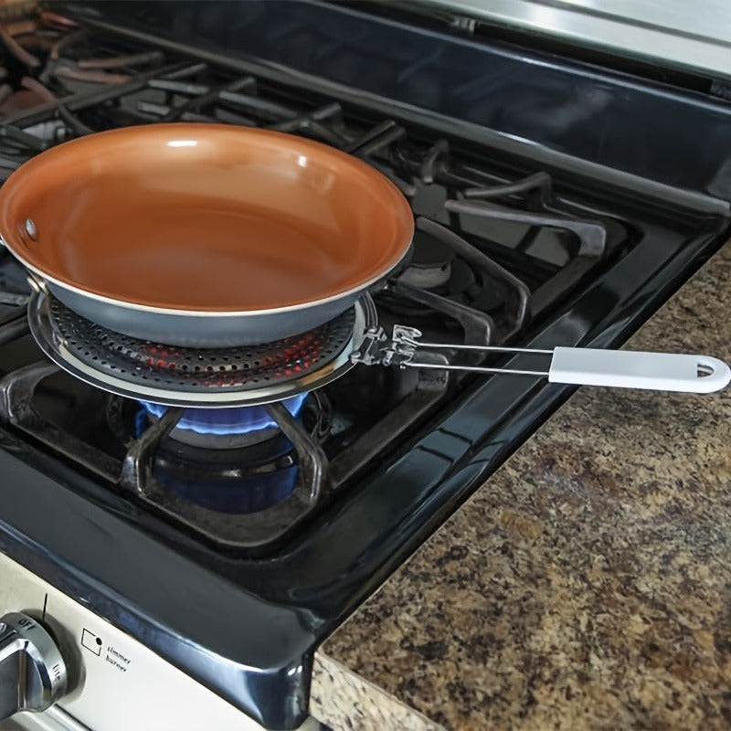 Placa difusora de calor de acero inoxidable 20,32cm con asa plegable para cocinas de gas y eléctricas