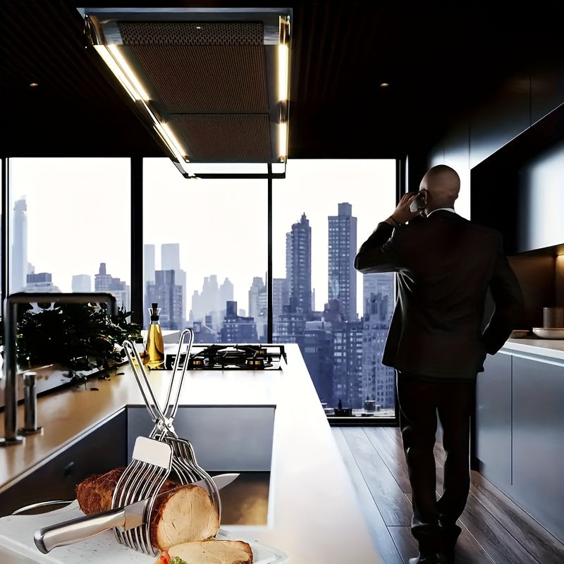 Cortadora de carne de acero inoxidable con pinzas integradas para roast beef, jamón, pan y barbacoa