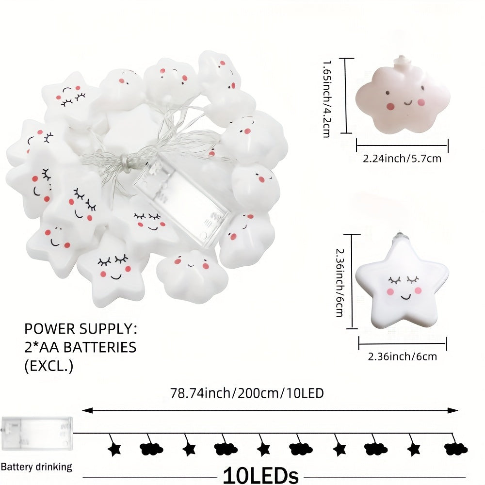 Luces de cadena con formas de nubes y estrellas, alimentadas por batería, decoración para interiores