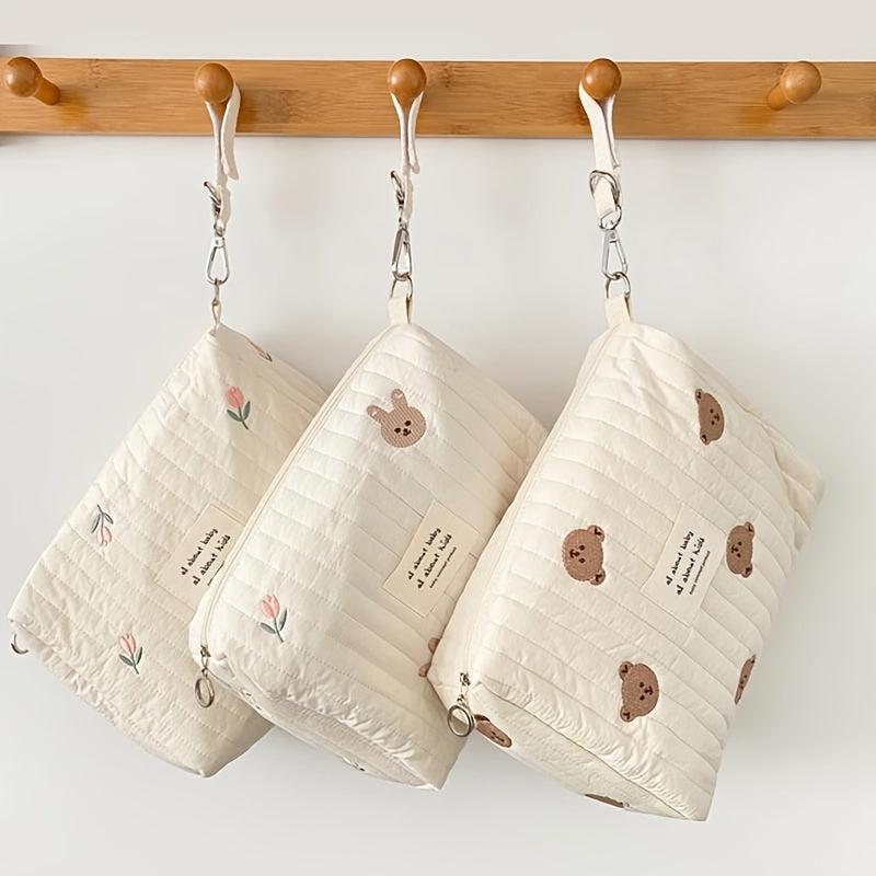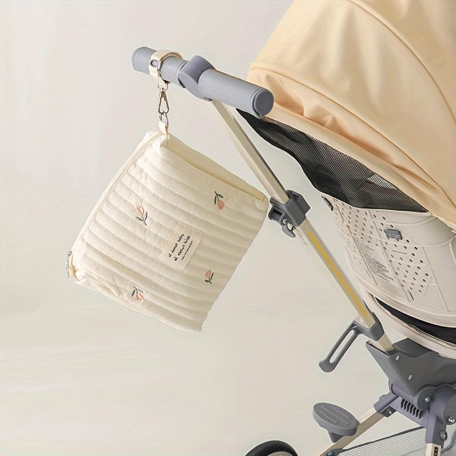 Bolsa de pañales bordada para cochecitos, diseño floral acolchado de poliéster