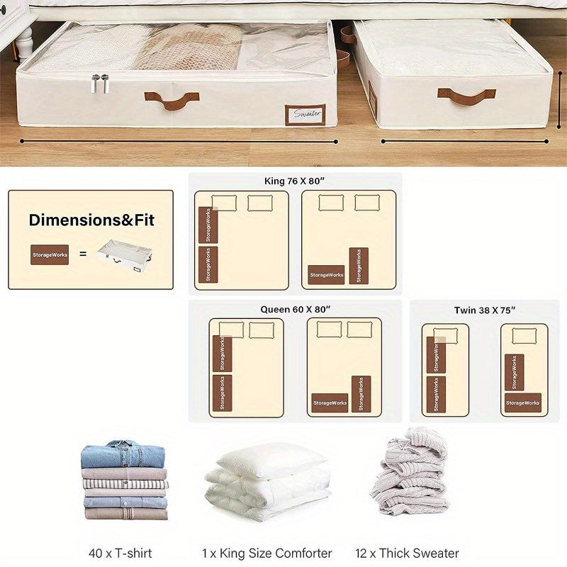 Organizador de almacenamiento bajo la cama, a prueba de agua, de tela no tejida con asas, gran capacidad