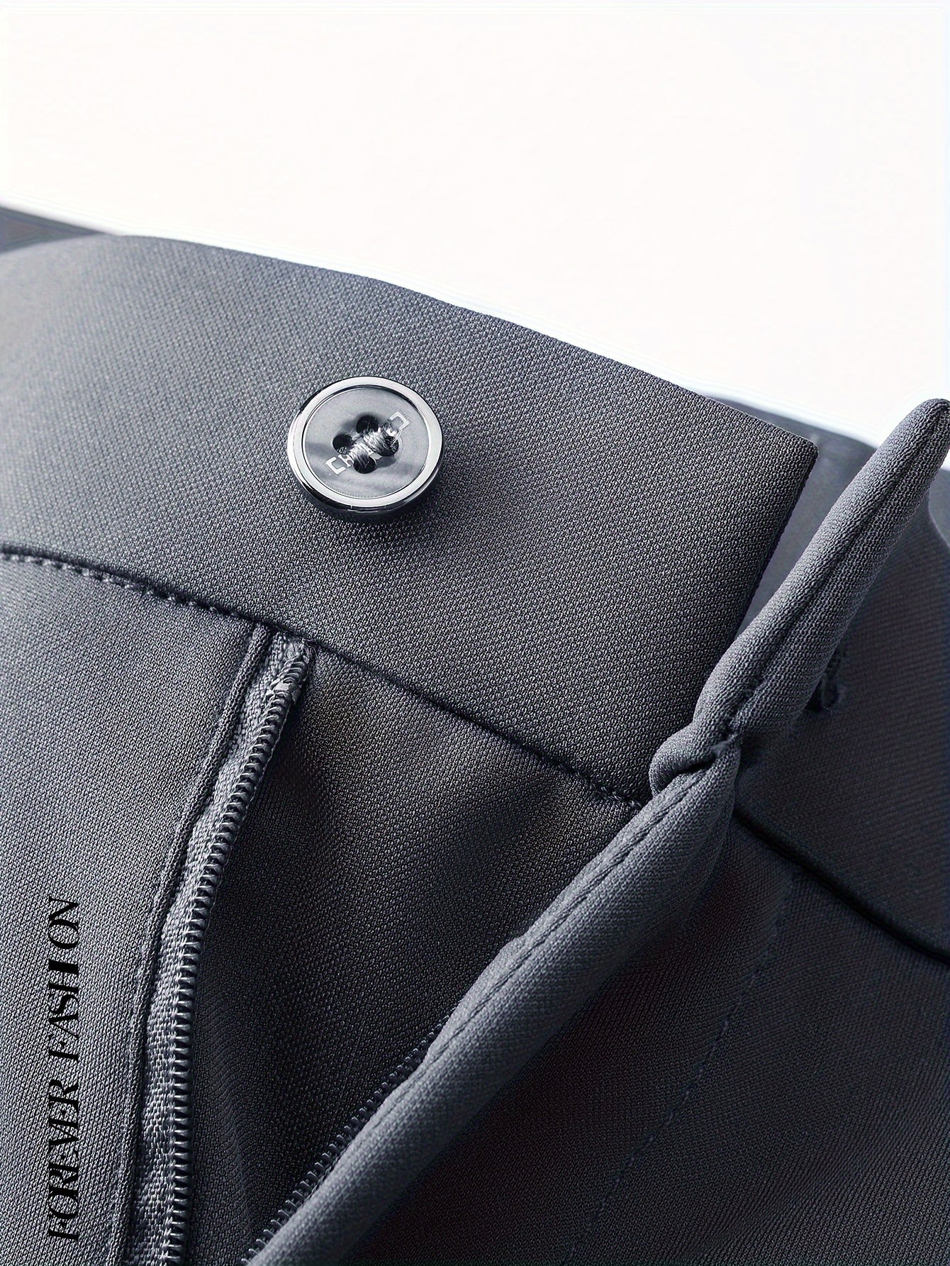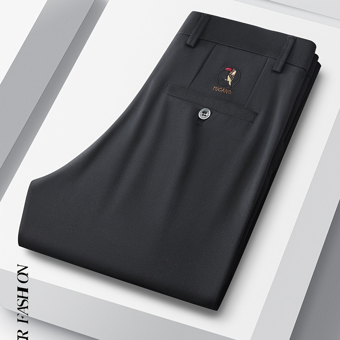 Pantalones de vestir negros para hombre de corte ajustado con emblema de pájaro, poliéster y spandex para negocios informales