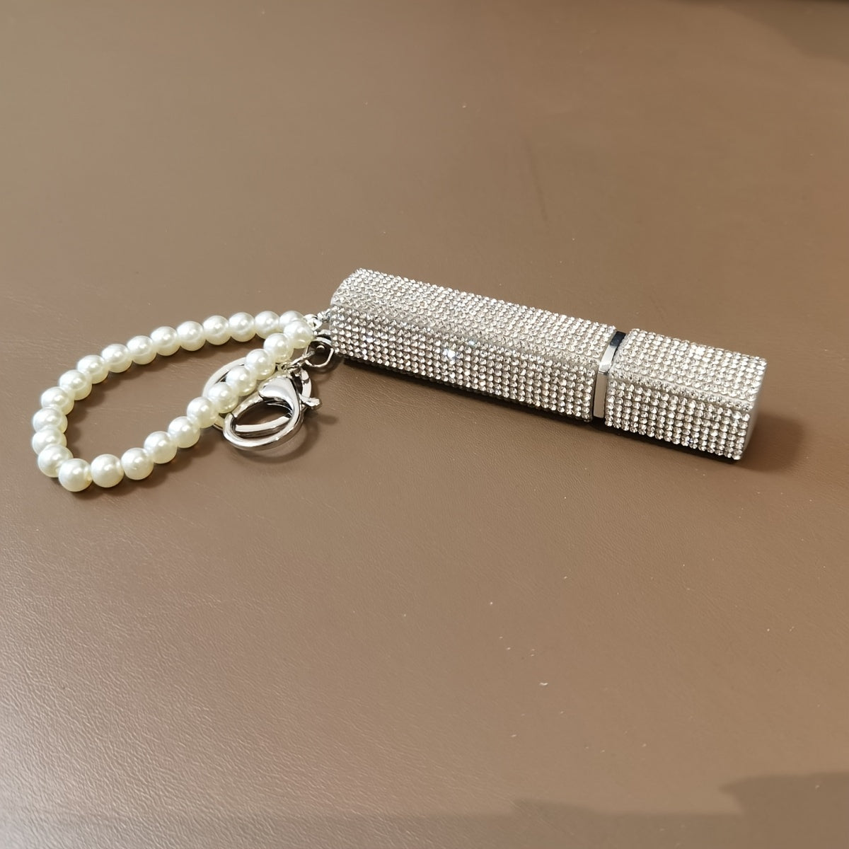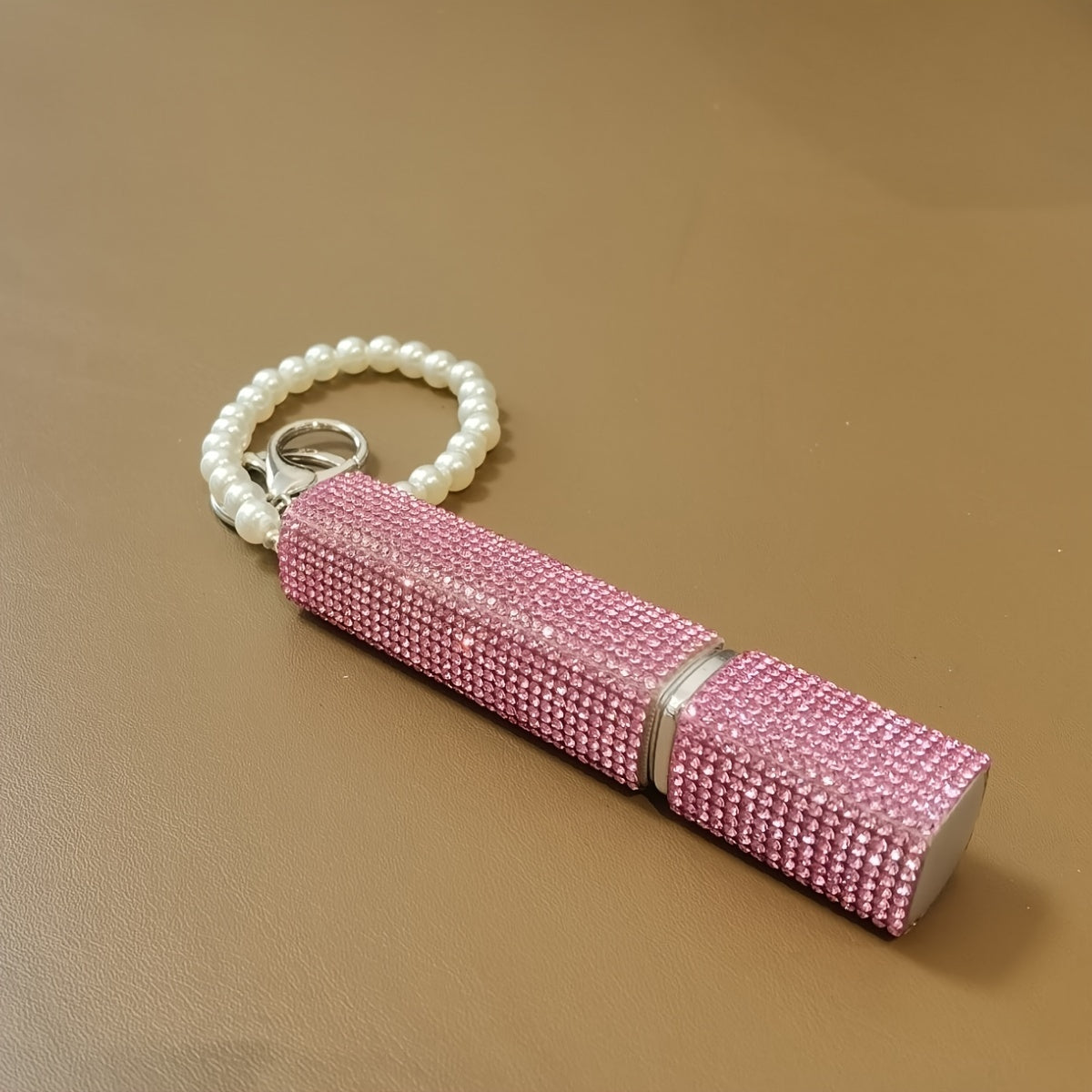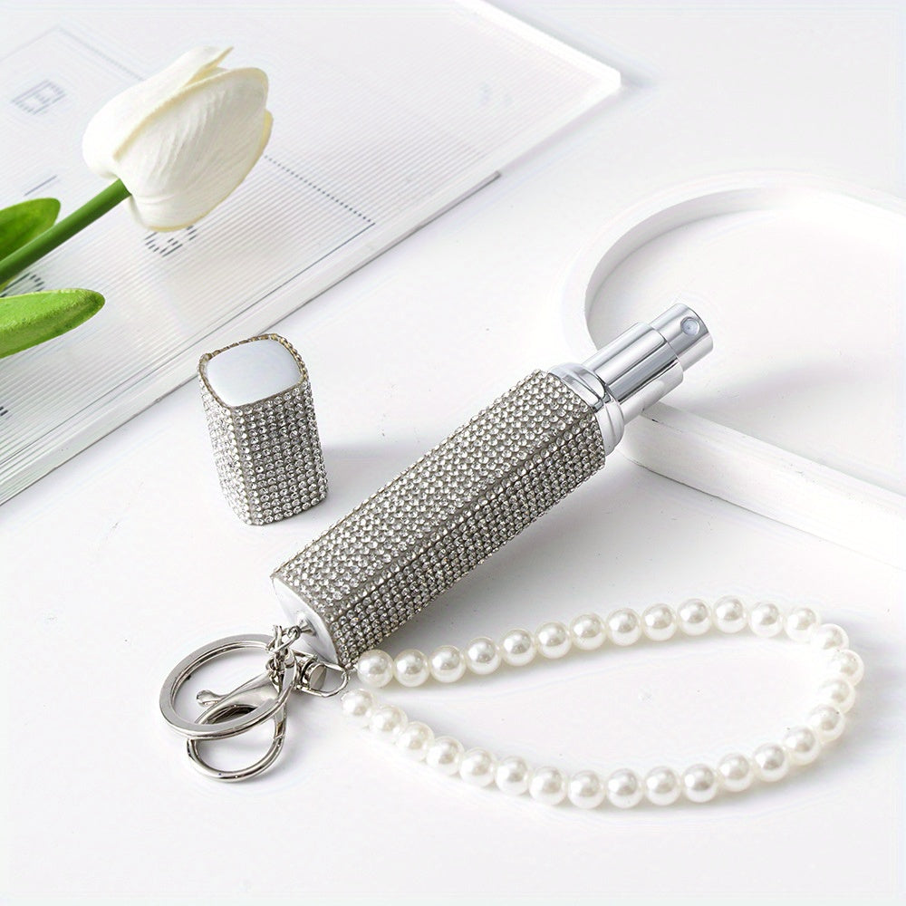 Llavero atomizador de perfume de 10ml con piedras de imitación y perlas falsas, recargable, bomba de aroma de viaje para mujeres