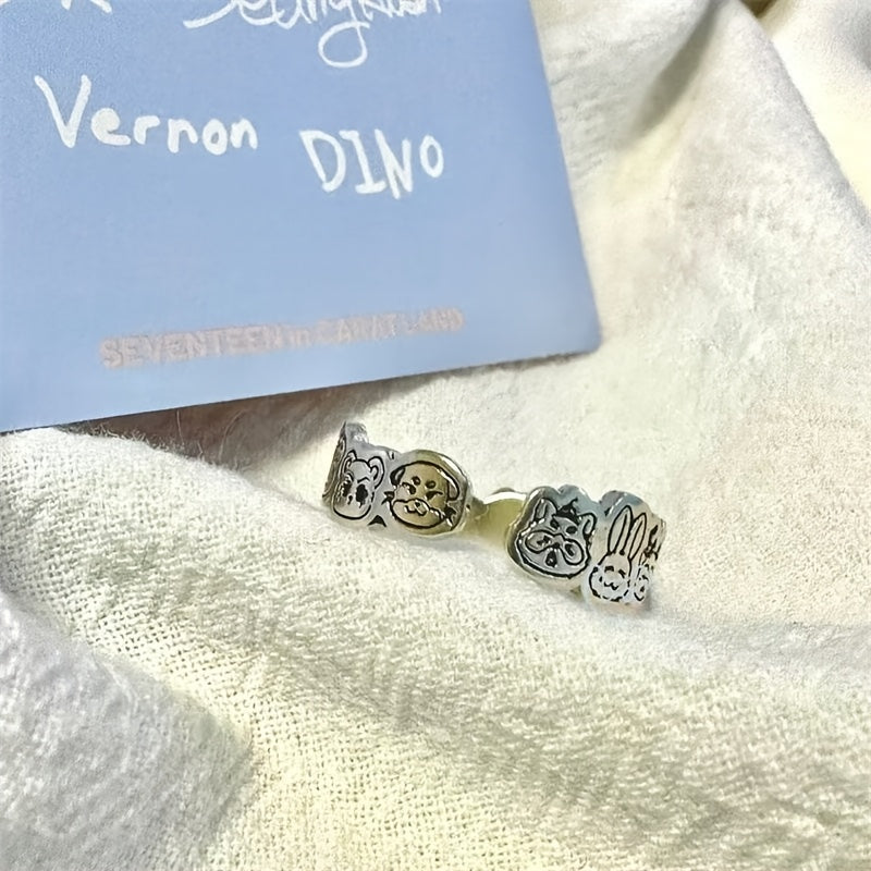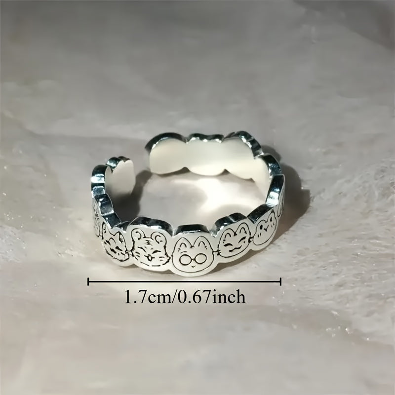 Anillo grabado de dibujos animados ajustable para mujeres y adolescentes, joyería elegante, regalo