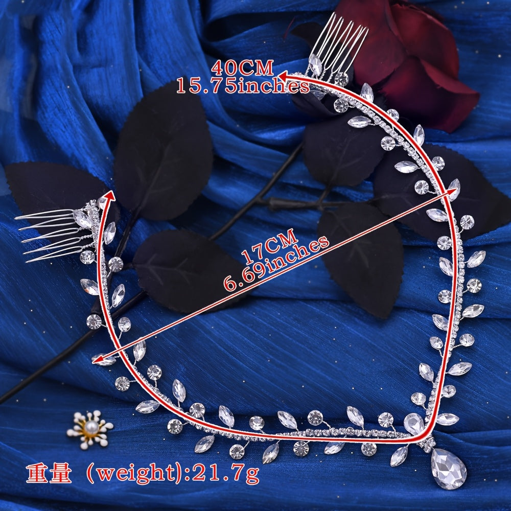 Diadema nupcial con colgante de rhinestone en la frente y banda para el cabello para boda