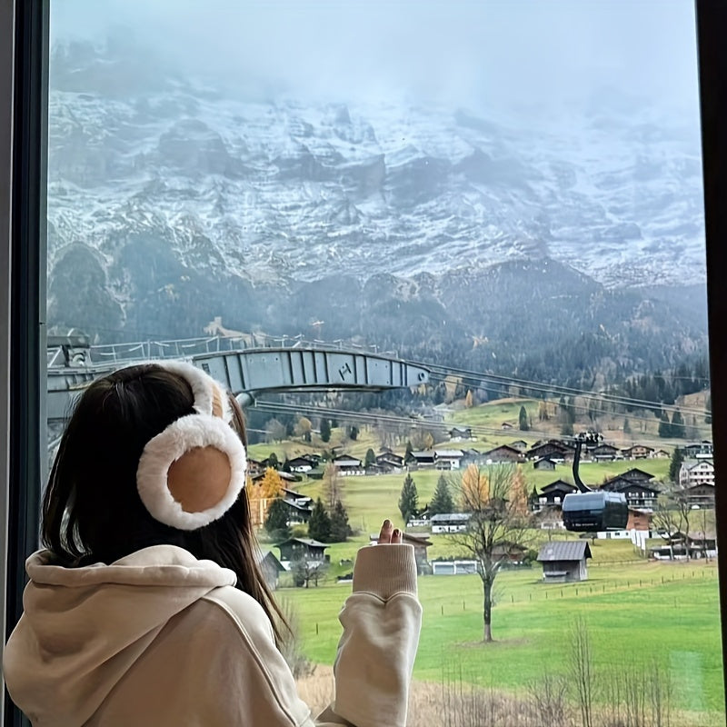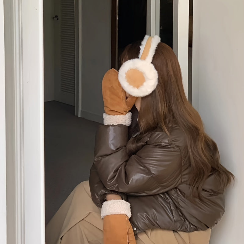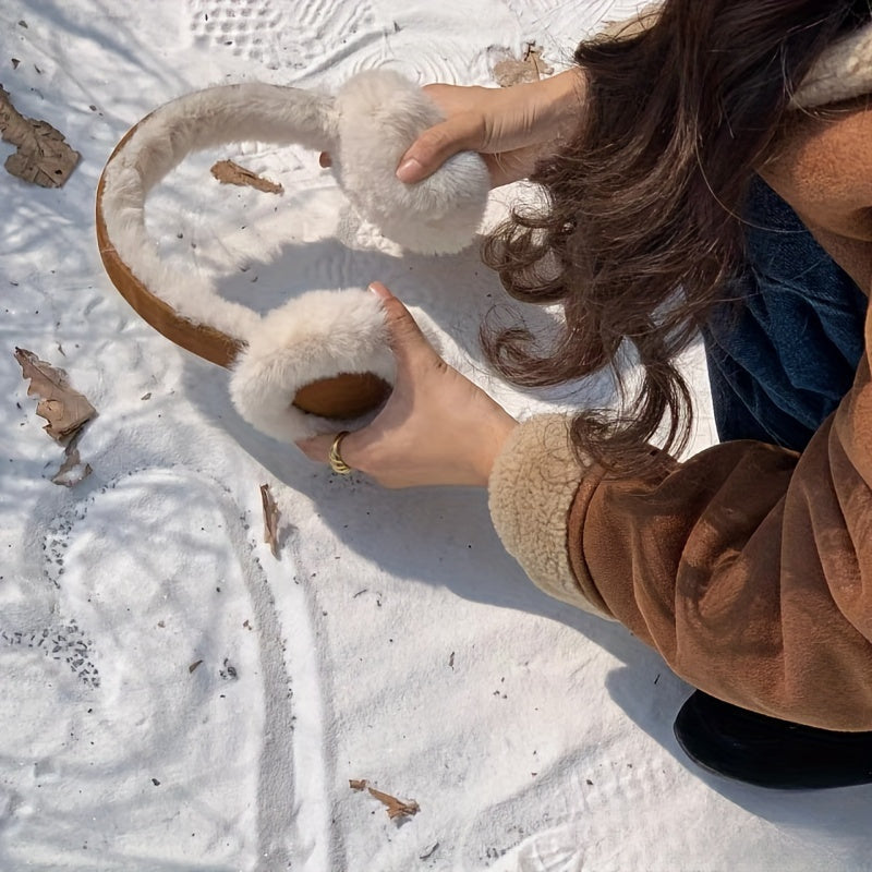 Orejeras plegables de felpa para mujer, suaves y acogedoras, forro de ante, calentador de orejas ajustable con diadema