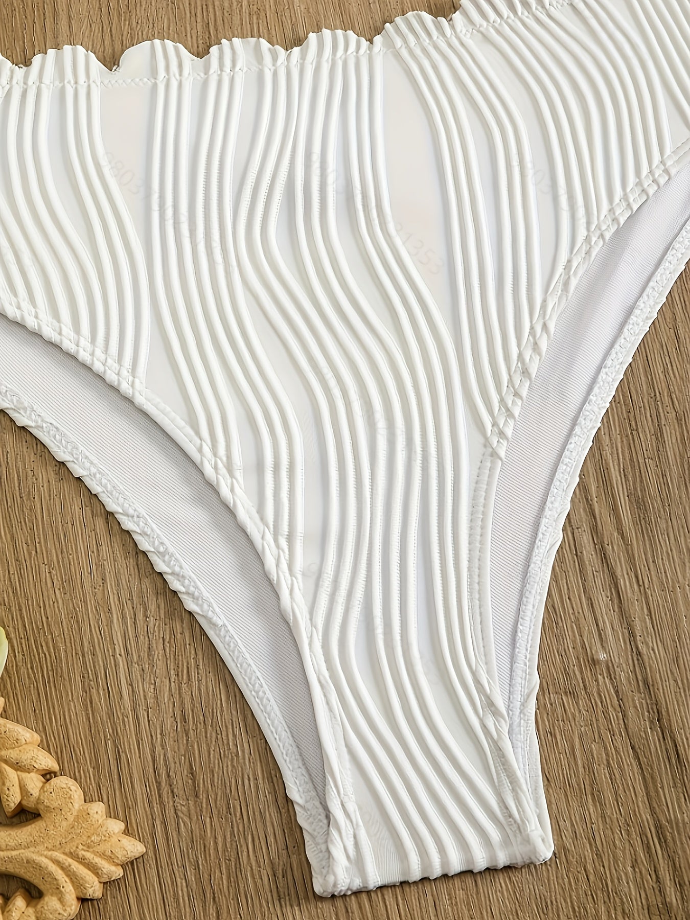 Conjunto de bikini de poliéster de alta elasticidad con detalles de perlas, sin mangas, tejido de punto, color sólido