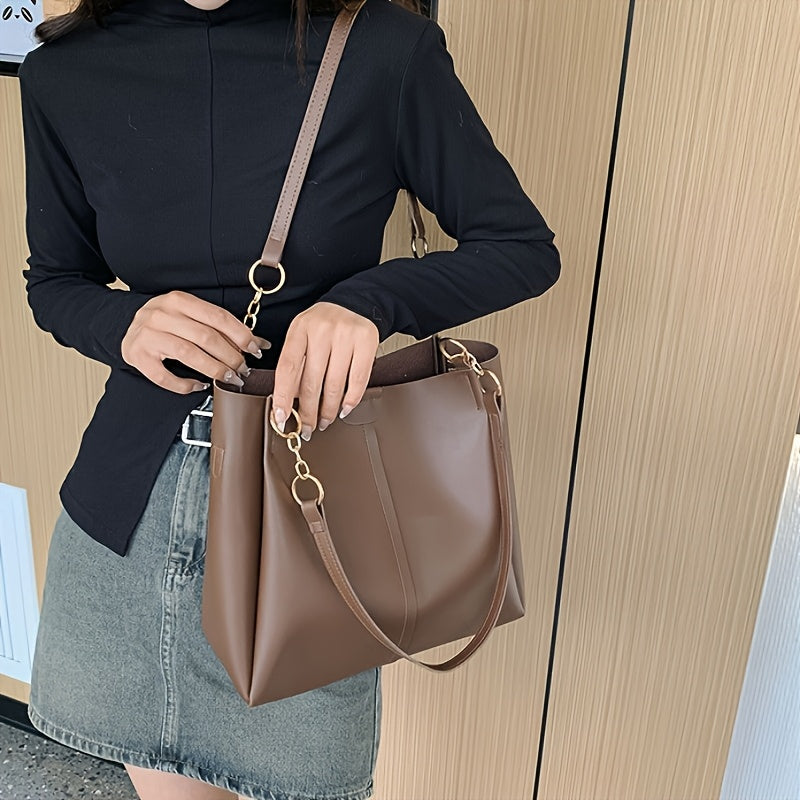 Bolso tote acolchado de PU de gran capacidad para mujer con cierre magnético negro