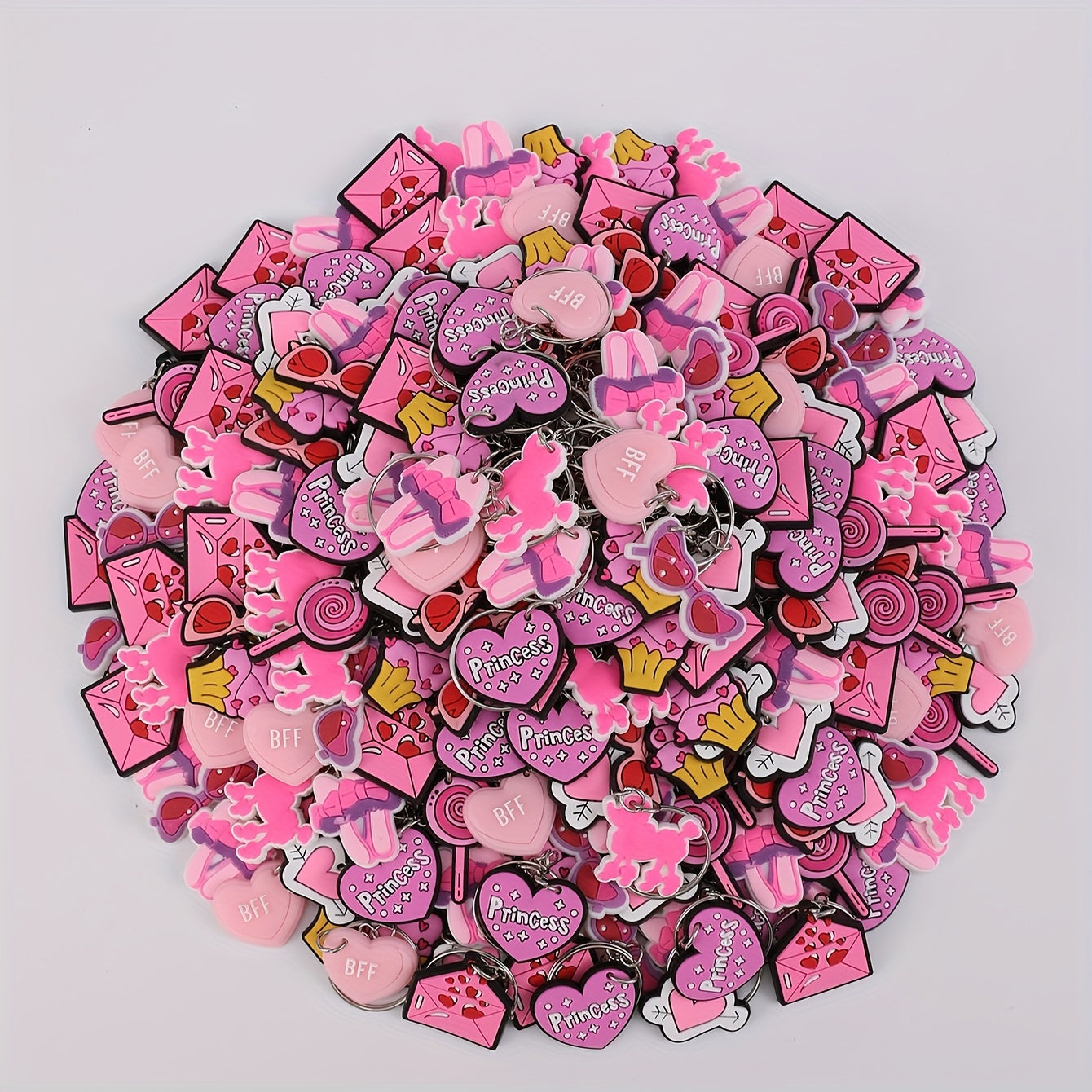 Set de llavero de PVC rosa con charms de dibujos animados, corazones, poodles, helados y piruletas para damas y niñas