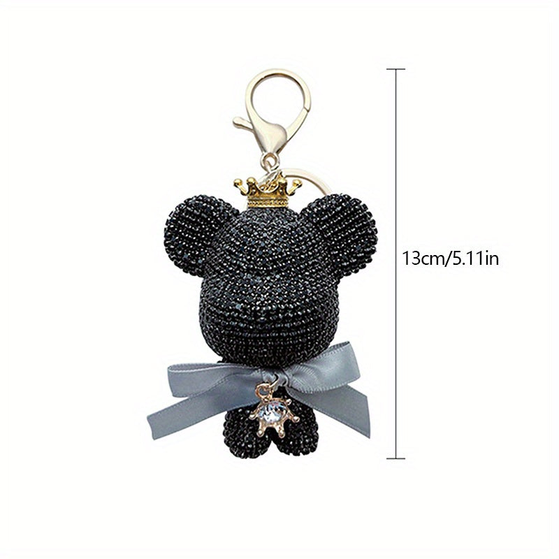 Llavero con corona de pedrería y oso con lazo, colgante de muñeca de dibujos animados para bolsos y coches