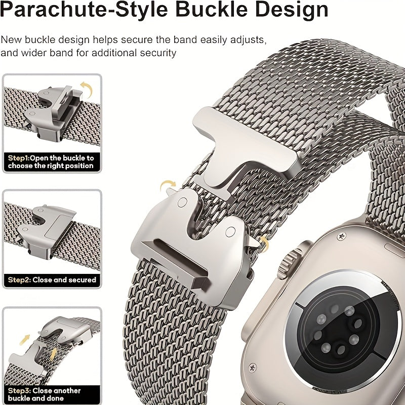 Correa de malla Milanesa de acero inoxidable para reloj Apple Watch resistente al agua, duradera y segura