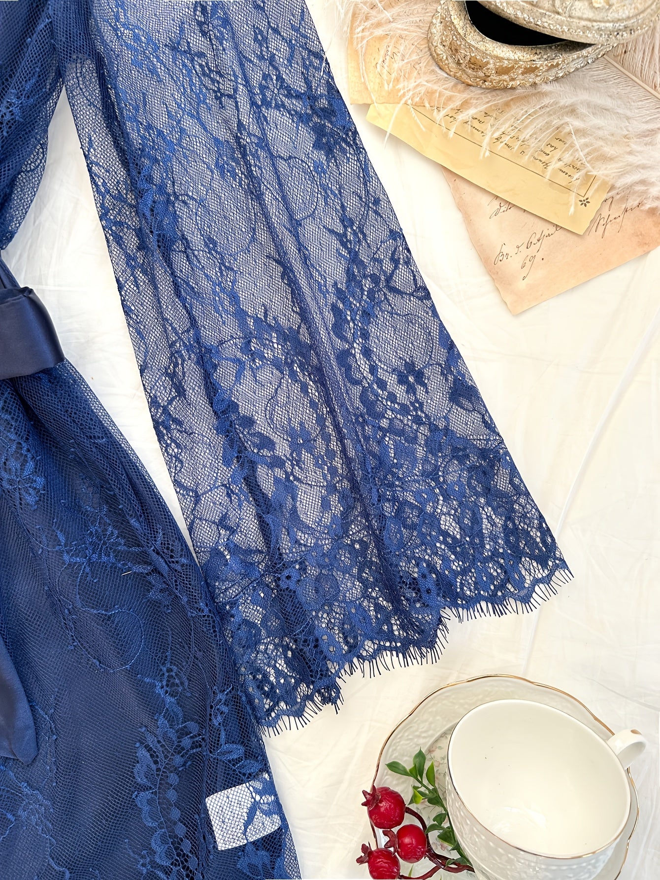 Conjunto de pijama de encaje para todas las estaciones de mujer con tirantes y cuello cowl