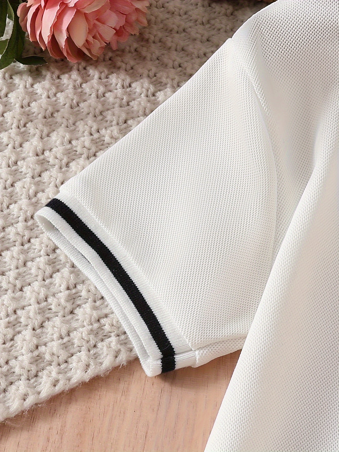 Vestido para niñas con cuello de volante en contraste con oso, manga corta, tela de punto, casual, para volver a clases