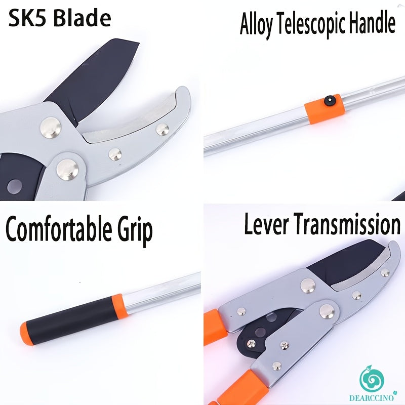 Tijeras de poda telescópicas para ramas altas y setos, hoja de acero aleado, mango ergonómico
