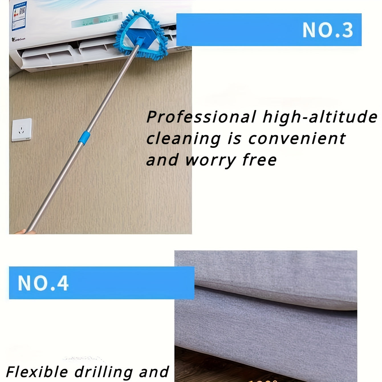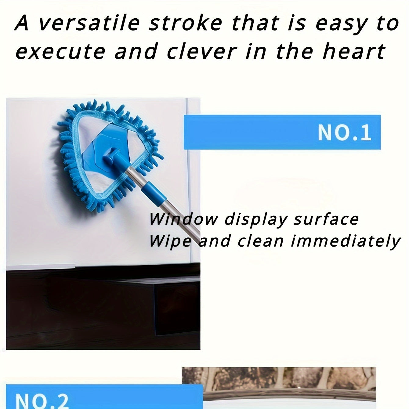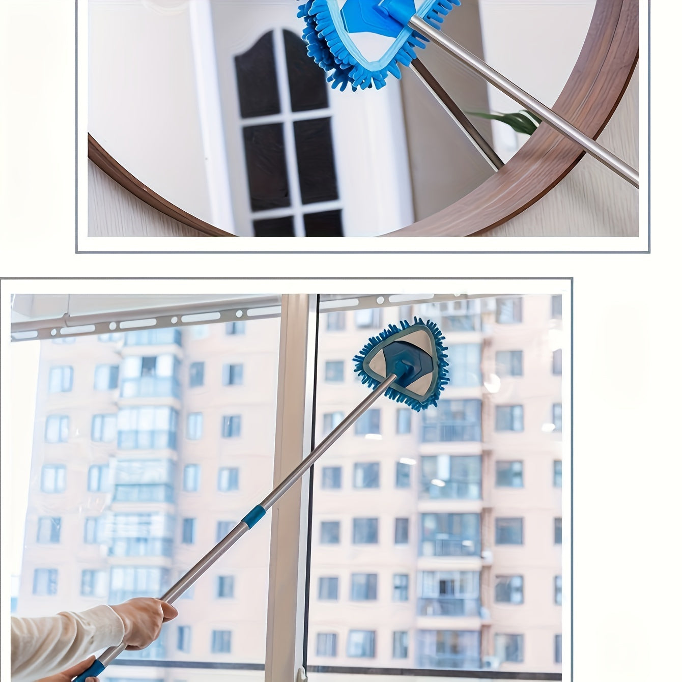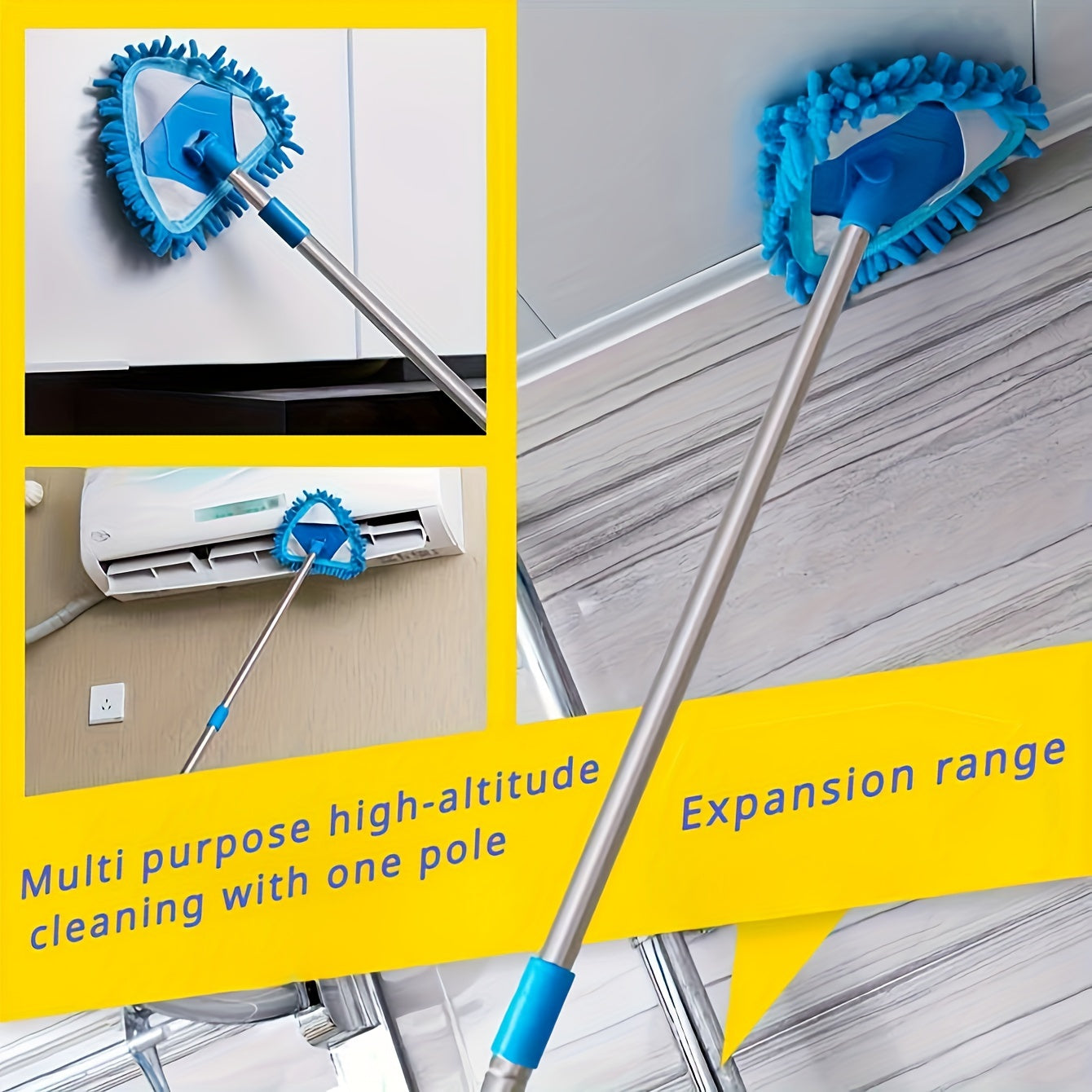 Mopa telescópica en forma de triángulo para limpieza, eliminador de polvo en múltiples superficies, mango largo, plástico duradero
