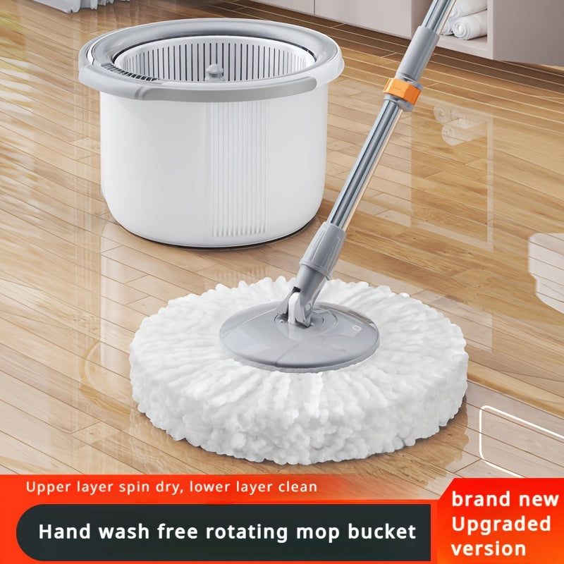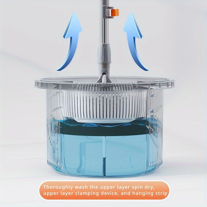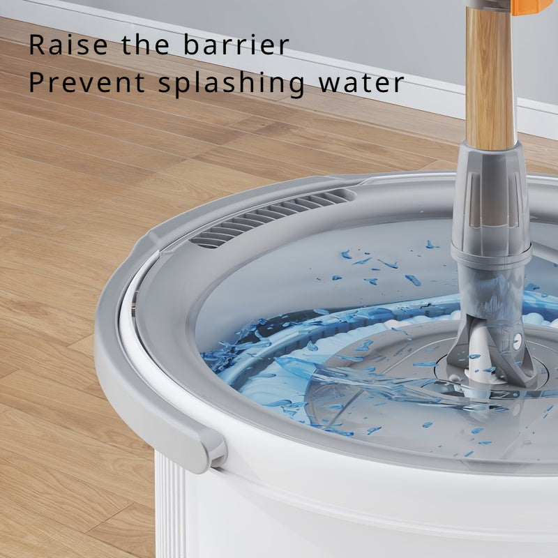 Juego de fregona y cubo con sistema de escurrido automático para facilitar la limpieza del suelo