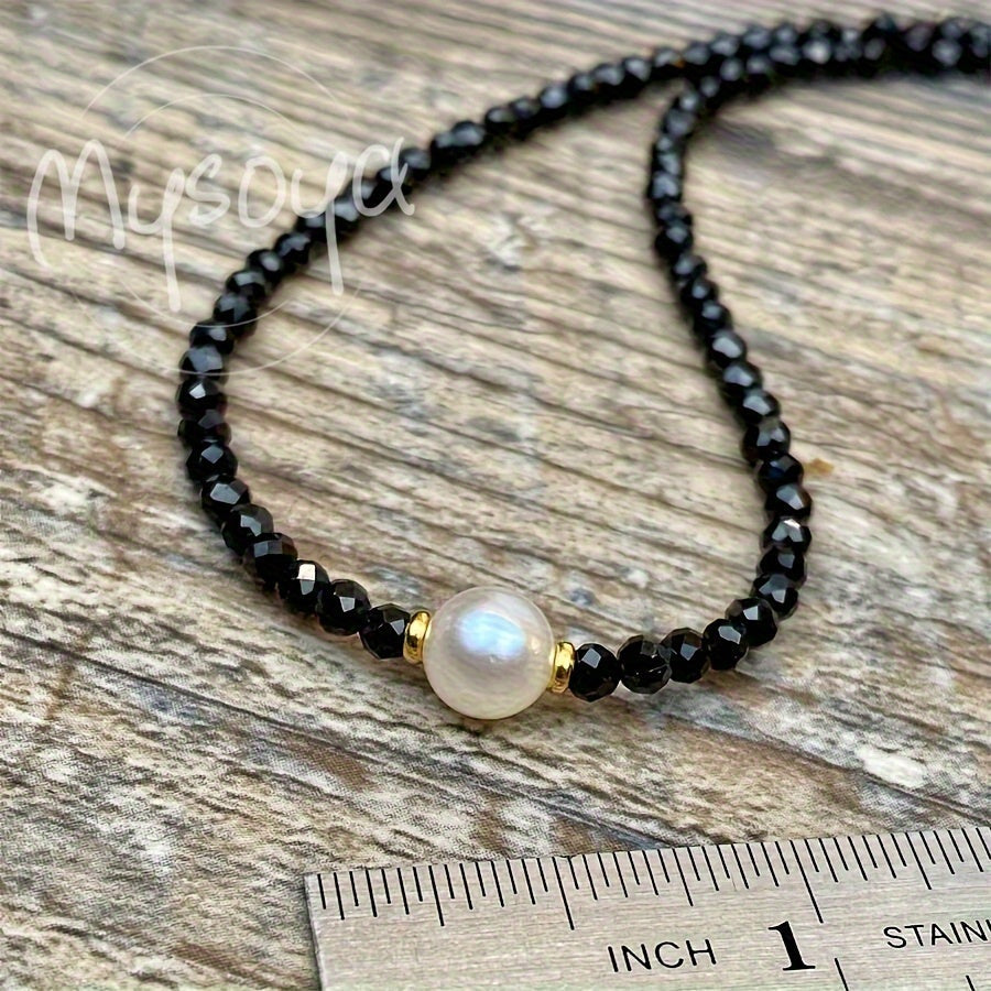 Collar de ónix negro y perla de agua dulce para mujer, joyería elegante, regalo