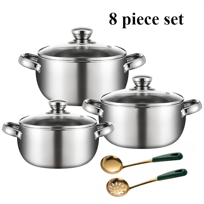 Juego de utensilios de cocina de acero inoxidable de 6 piezas con tapas, ollas profundas para sopa, pasta y mariscos
