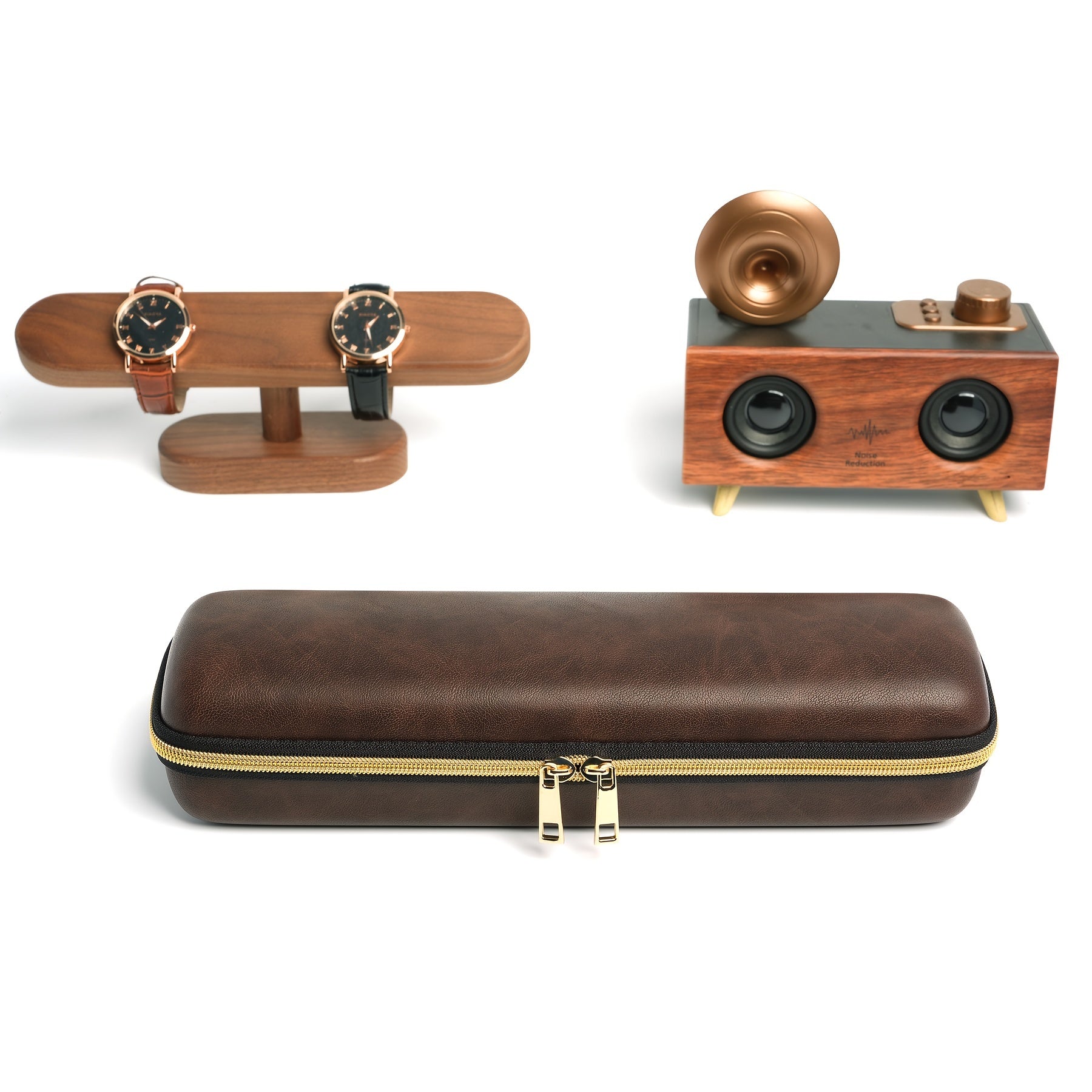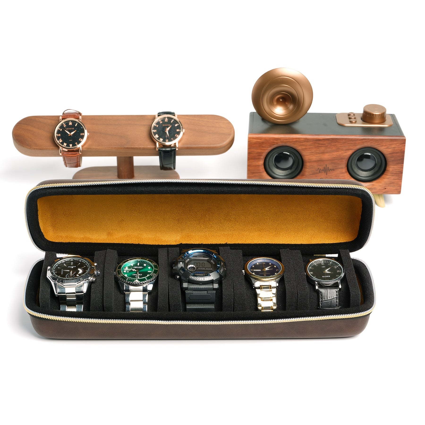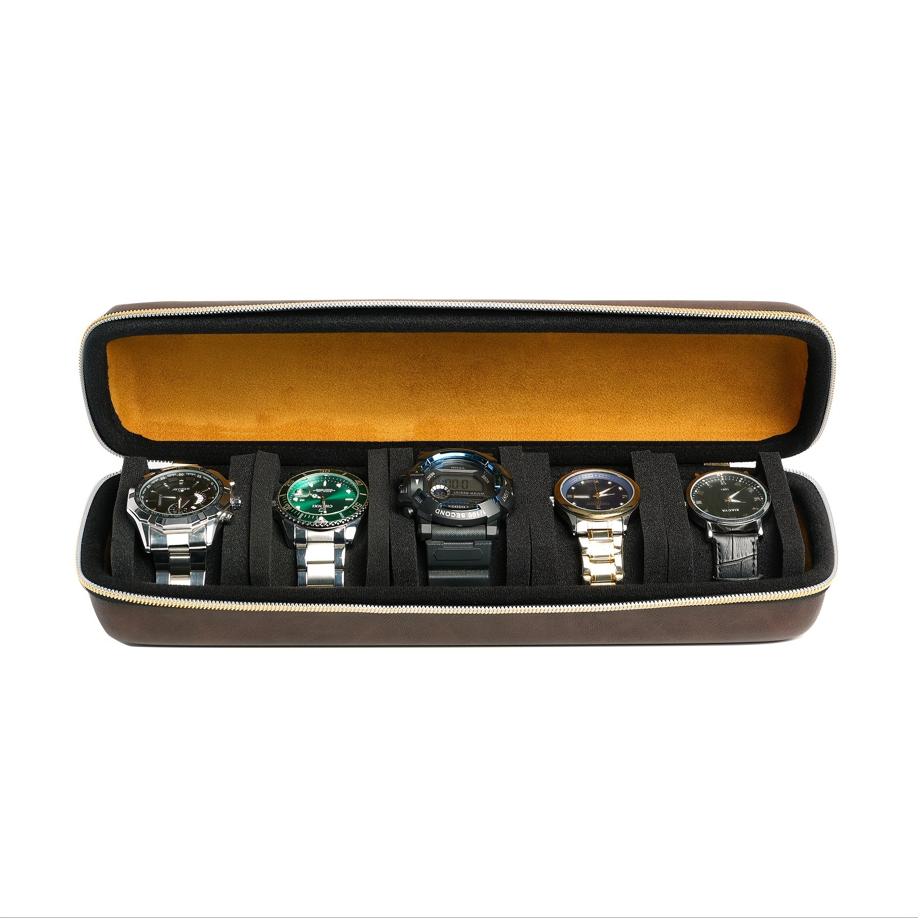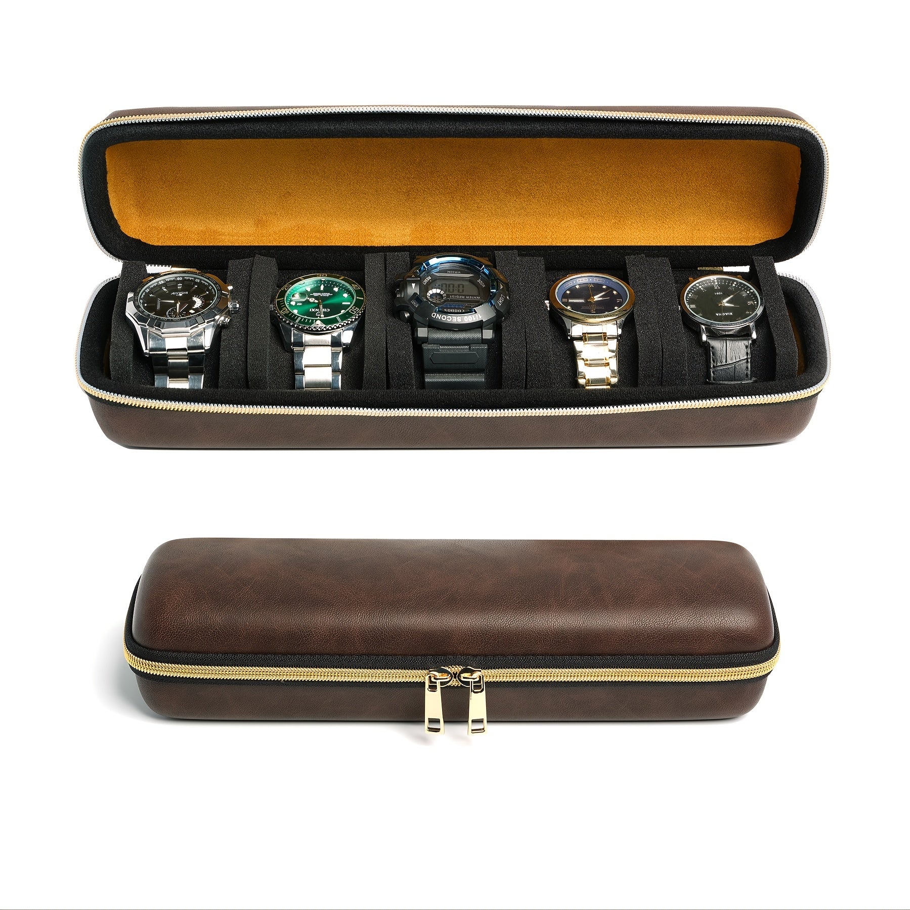 Caja para relojes de cuero sintético para 5 relojes con forro de terciopelo y carcasa dura