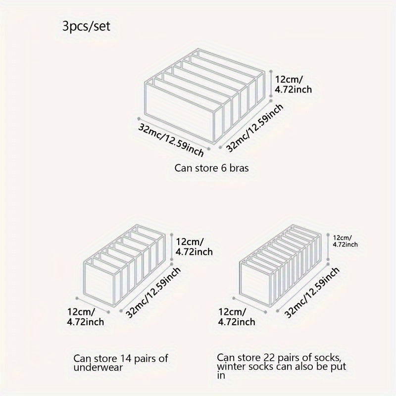 Juego de organizadores de cajones de tres piezas para ropa interior, calcetines y sujetadores, tela duradera, ahorro de espacio