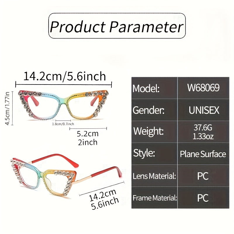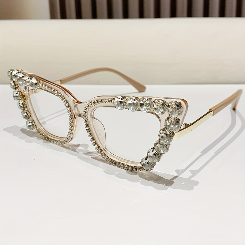 Gafas de ojo de gato azul con detalles de rhinestone, montura completa para fiestas y eventos