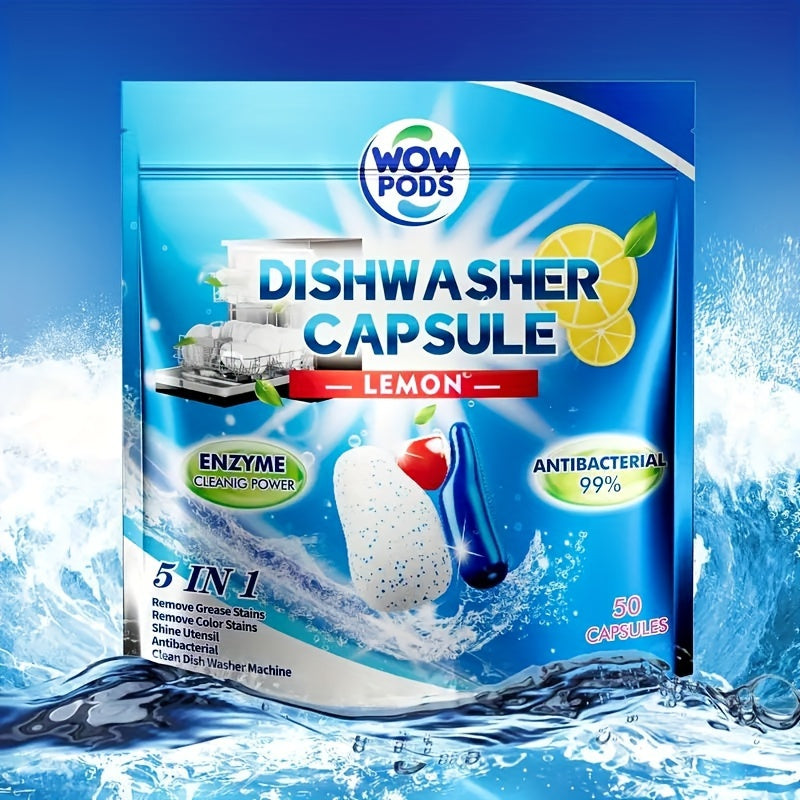 Cápsulas para lavavajillas líquido todo en uno, poder de limpieza triple acción para grasa y manchas
