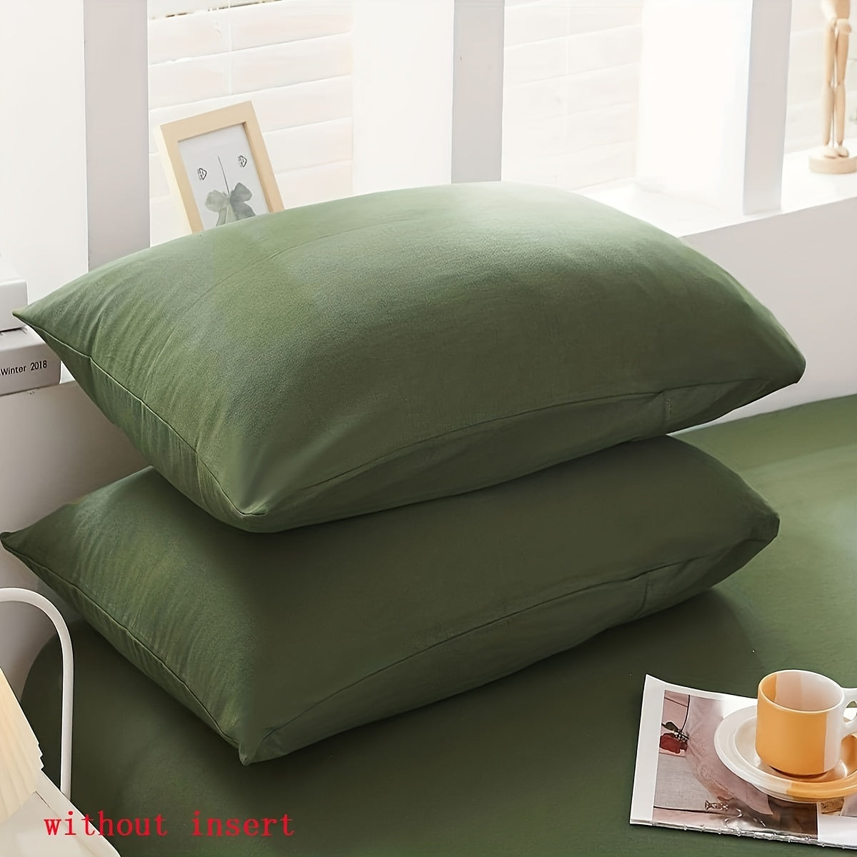 Fundas de almohada verde ejército, poliéster de cepillado suave, cierre con cremallera, ropa de cama duradera