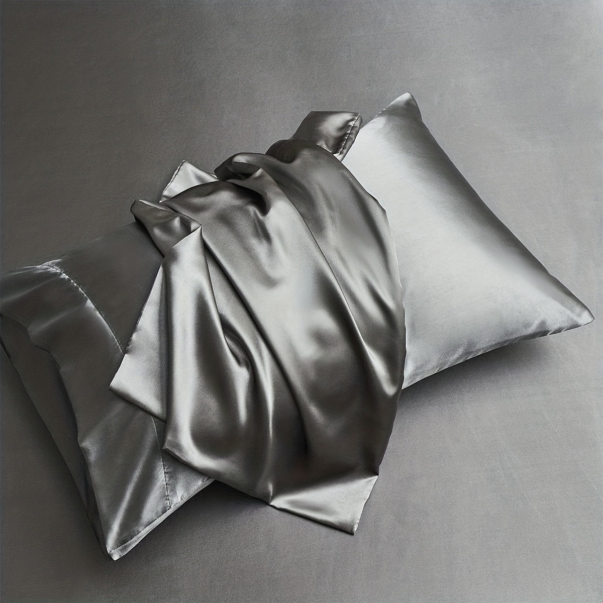 Juego de 2 fundas de almohada de satén de colores sólidos para dormitorio o sala de estar