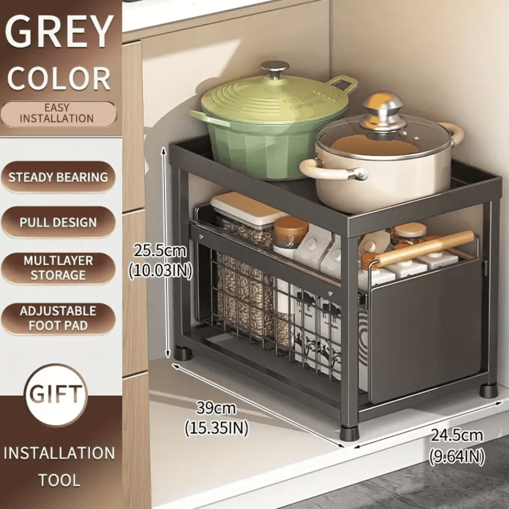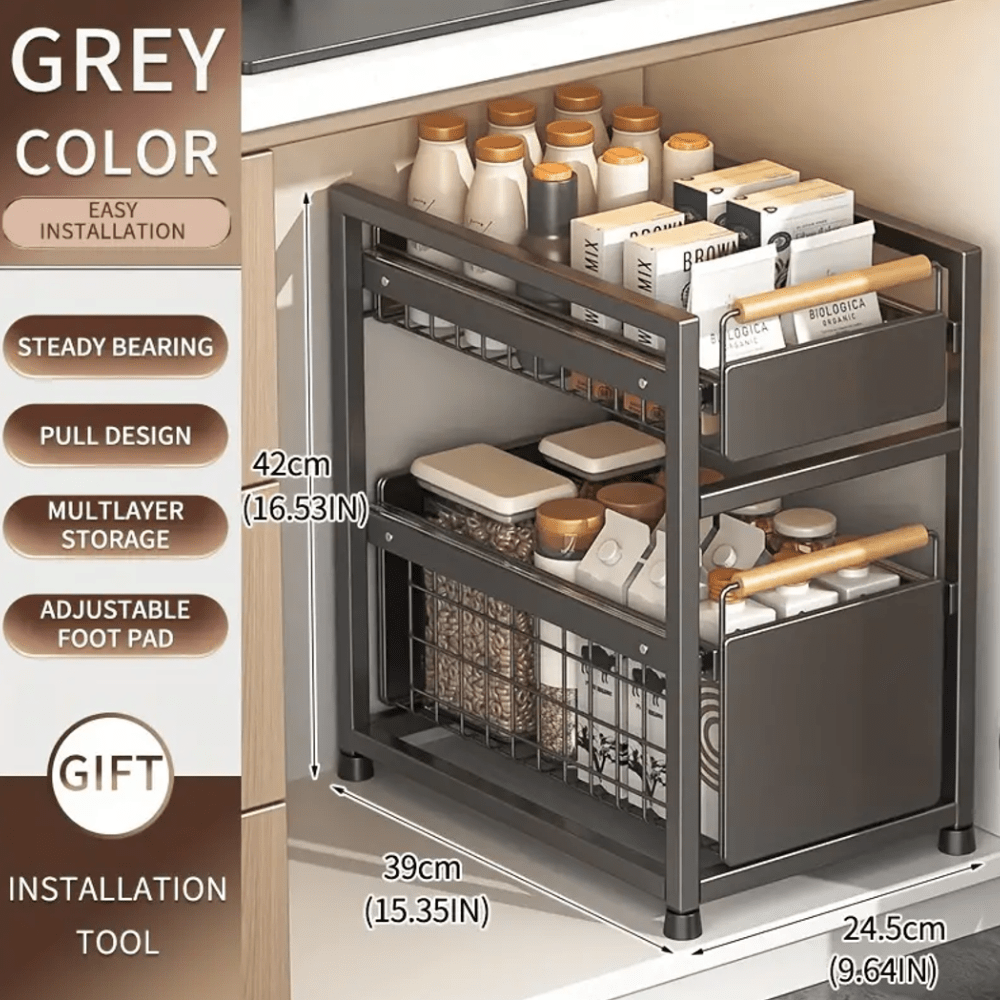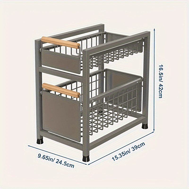 Estante de almacenamiento de dos niveles bajo el fregadero con cajones deslizantes para especias y utensilios organizador de cocina
