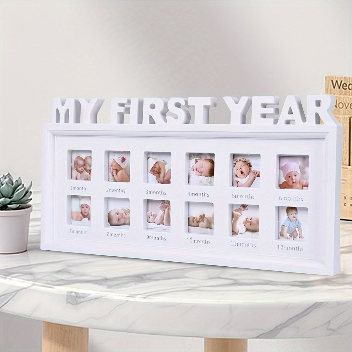 Marco de fotos de luna llena de un año para pared o exhibición en estantería del crecimiento del bebé