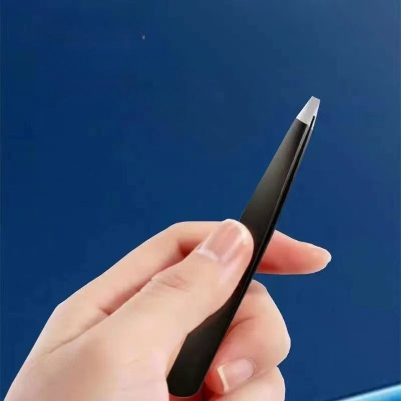 Pinzas de cejas de metal unisex con punta plana y en ángulo para el cuidado de cejas o barba