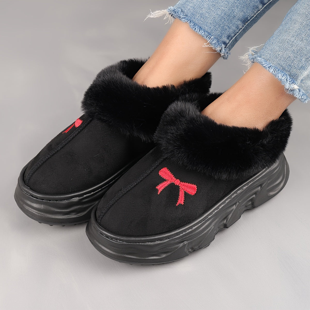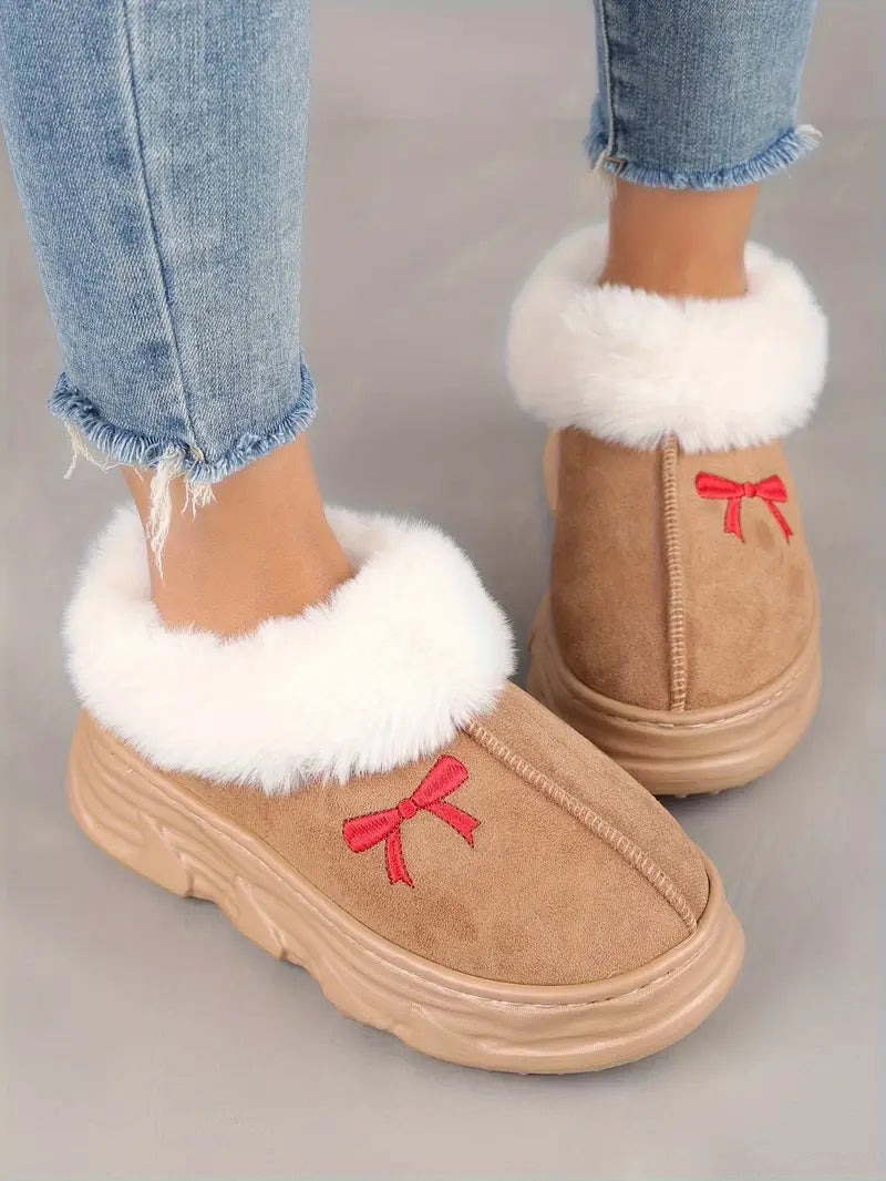 Unisex Short Boots Warm Snow Shoes for Autumn Winter Black White