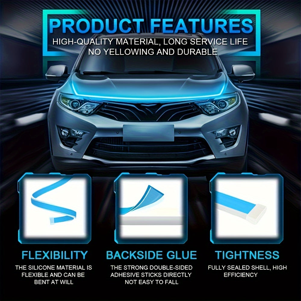 Barra de luz para capó de coche de 12V universal de 180cm flexible LED para coches, SUVs, camiones