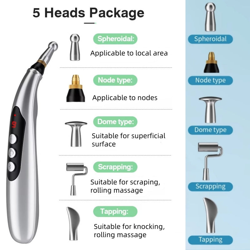 Bolígrafo de masaje eléctrico con 9 configuraciones, pantalla digital, recargable para espalda, cintura y piernas