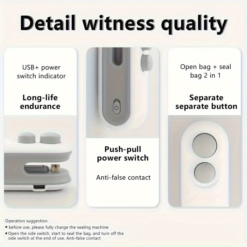 Sellador de bolsas de aperitivo mini con cortador incorporado, sellador de vacío portátil para alimentos y bolsas de plástico