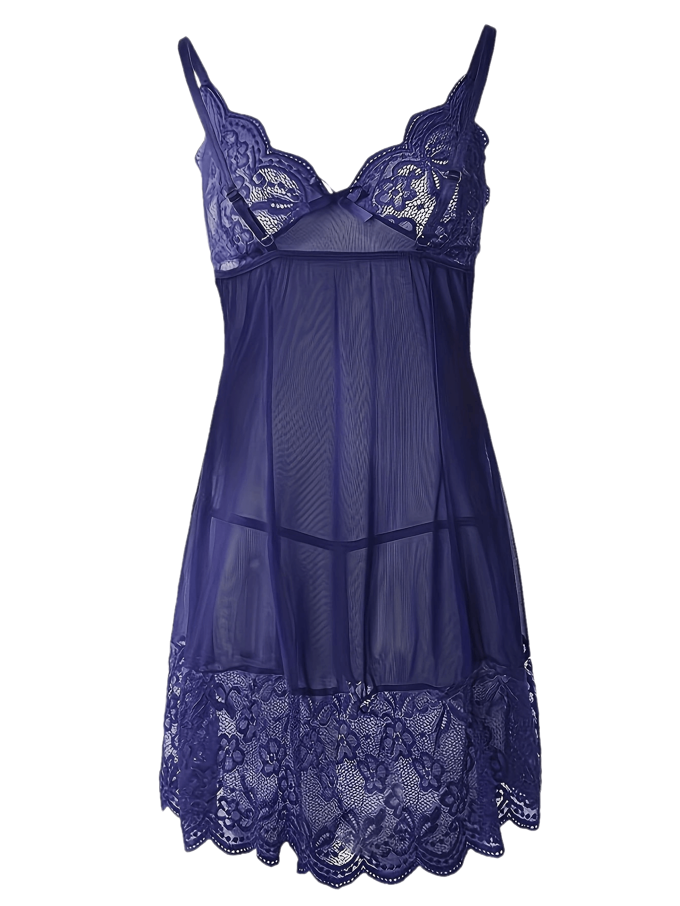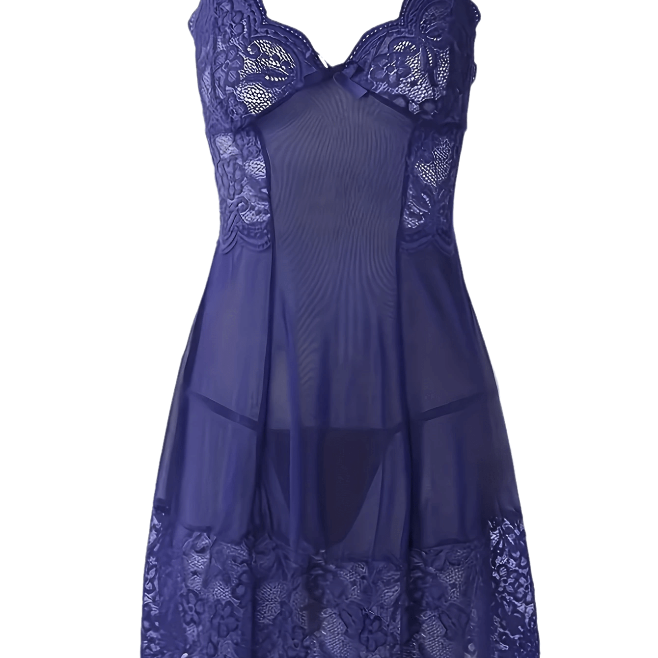 Conjunto de camisón de encaje para mujer con escote en V, poliéster y spandex, ropa de dormir