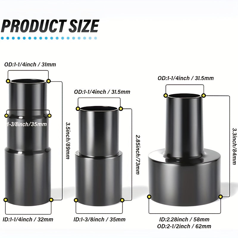 Kit de adaptadores para manguera de vacío con reductores para aspiradora húmeda y seca, de 2-1/2 a 1-1/4 pulgadas
