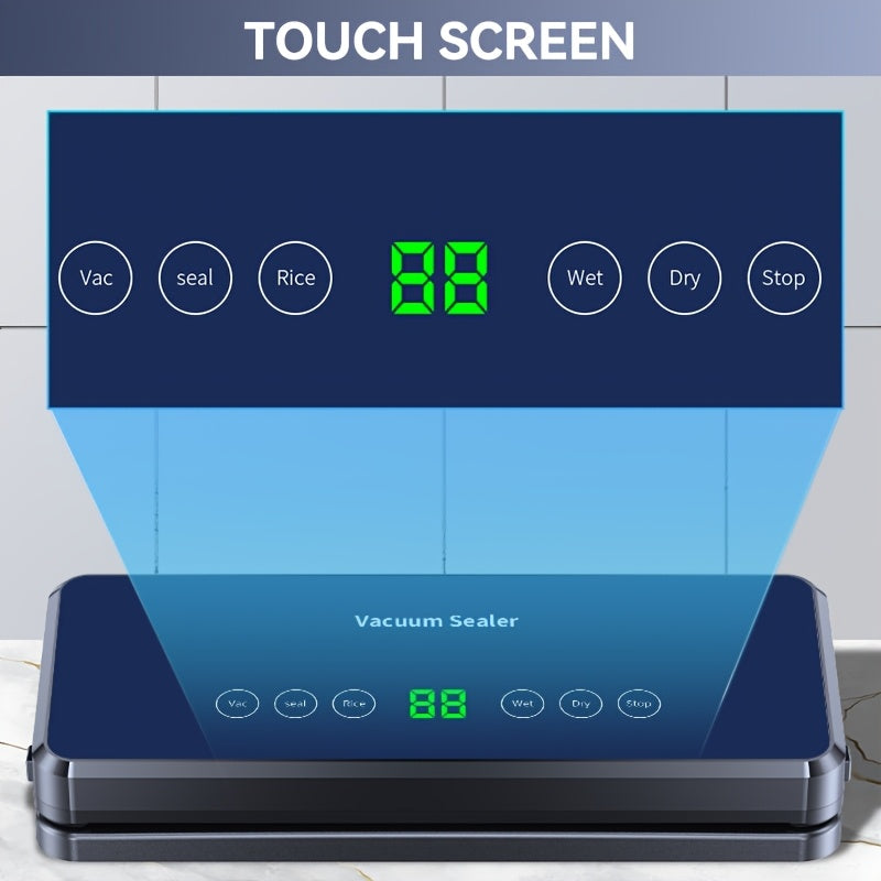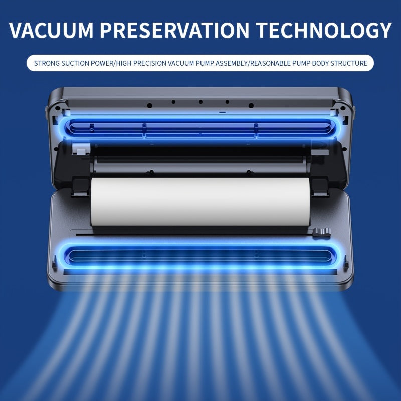 Selladora al vacío con cortador, modos de alimentos secos y húmedos, compacta, luces LED