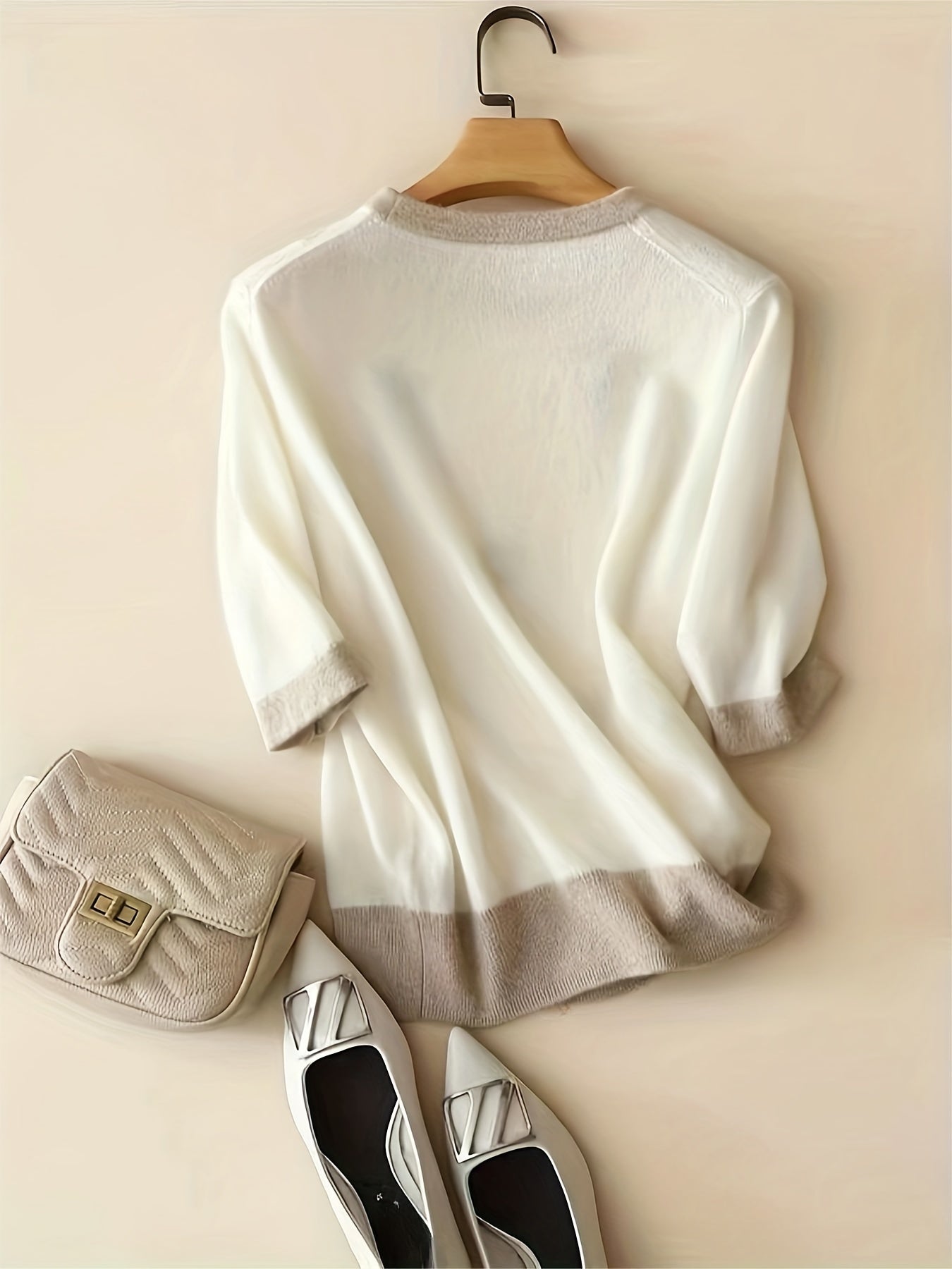 Suéter de mujer con bordado floral, cuello redondo, otoño, primavera, casual, elegante