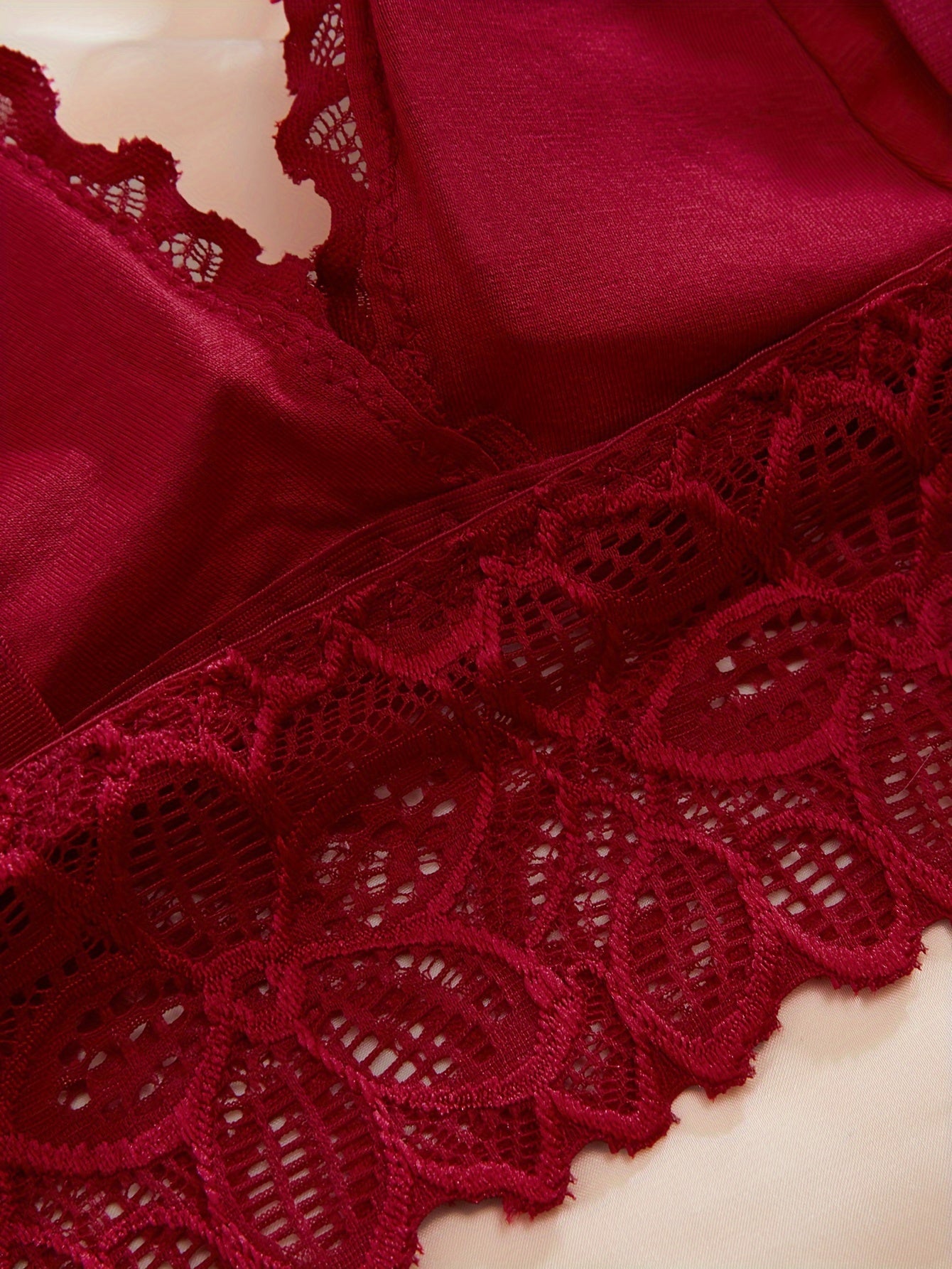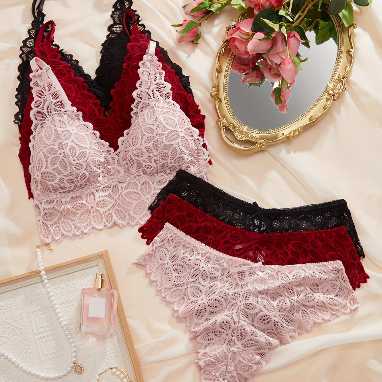Conjuntos de lencería floral para mujer, sujetadores inalámbricos de encaje y bragas con elasticidad