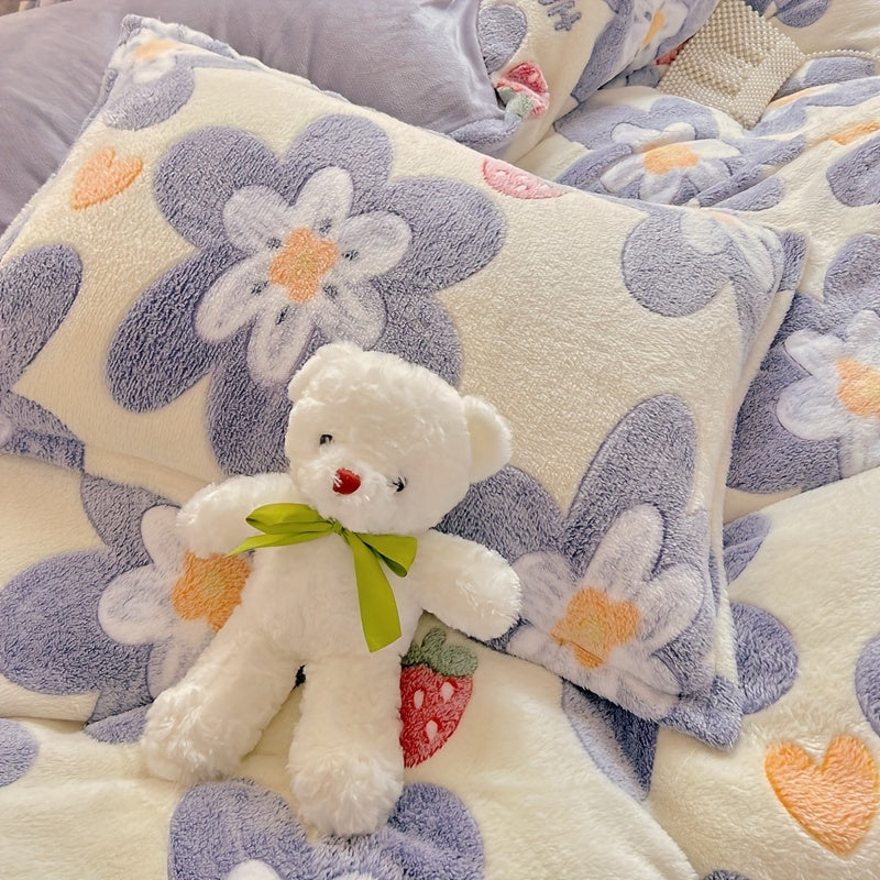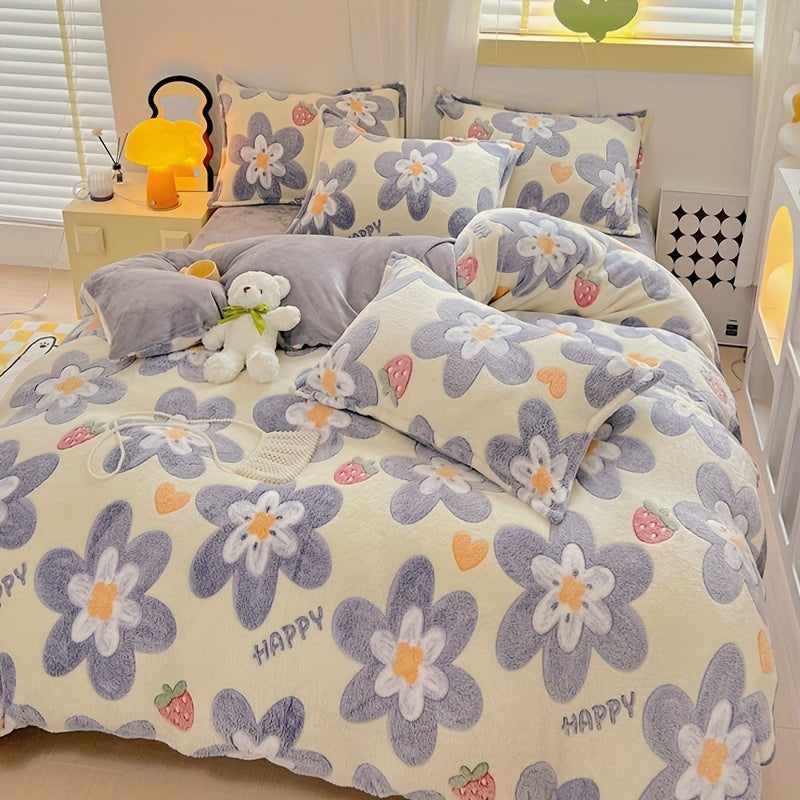 Conjunto de funda nórdica de terciopelo con estampado de flores incluye 1 funda nórdica y 2 fundas de almohada ropa de cama suave y cálida para otoño e invierno