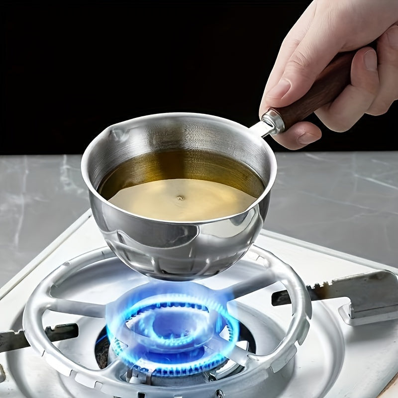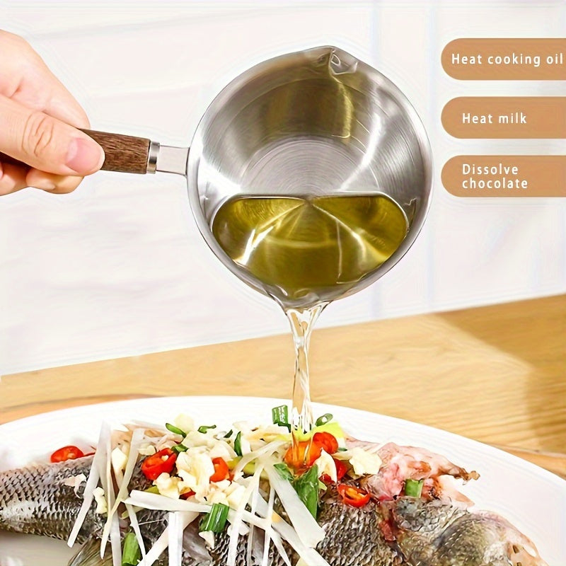 Cazo de acero inoxidable con mango de madera para cocinar y calentar