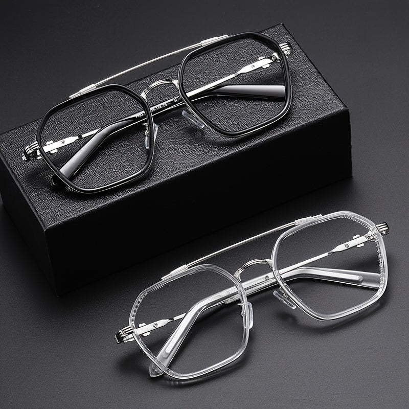 Gafas de marco de metal negro vintage con lentes anti-luz azul para uso en ordenador