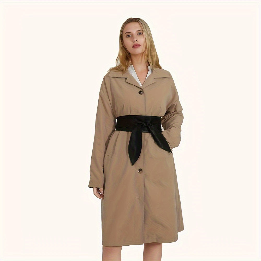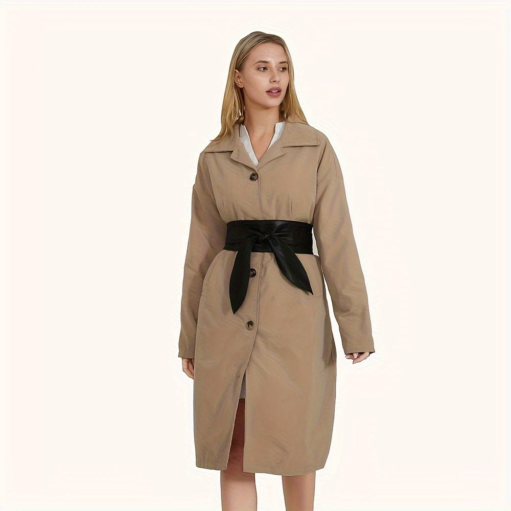 Cinturón de cuero PU negro con lazo ajustable para abrigos y vestidos