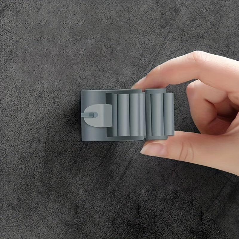 Organizador de pared para fregona y escoba, instalación sin taladro, ganchos de plástico ajustables, almacenamiento en cocina, baño y garaje