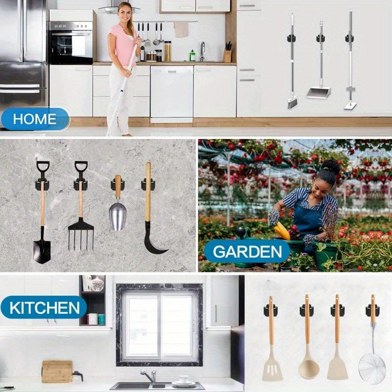 Soporte de pared para trapeadores, organizador de estantes para escobas, palas, acero inoxidable